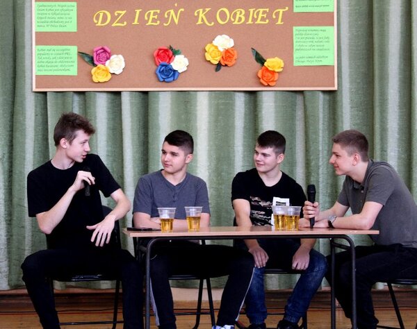 Uczniowie oddziałów gimnazjalnych przygotowali ciekawostki na temat kobiet, wcielali się w różne kobiece postaci, a także zorganizowali turniej kobiecych umiejętności. Jego wyniki nie były najważniejsze, bo liczyła się dobra zabawa i miła atmosfera, dlatego wszystkie uczestniczki zmagań zostały nagrodzone słodkościami.