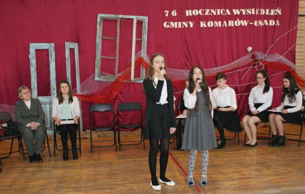 Druga część rocznicowych obchodów odbyła się w sali sportowej szkoły w Komarowie-Osadzie, gdzie uczniowie zaprezentowali okolicznościowy program artystyczny.