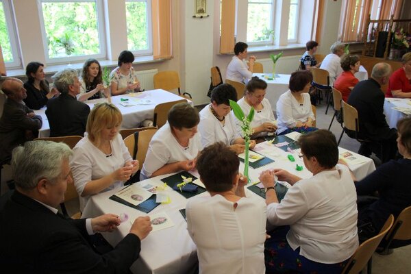 Swoim doświadczeniem, wiedzą i umiejętnościami, artystka podzieliła się z uczestnikami wtorkowego spotkania, którzy pod jej okiem wykonywali kwiaty z krepiny, tworząc jeden, kolorowy, wiosenny bukiet.