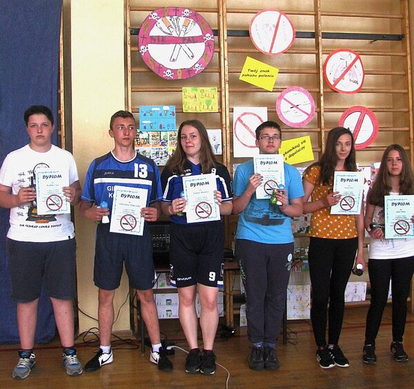 Podobne działania edukacyjne były w komarowskim gimnazjum realizowane od września. W ramach programu profilaktycznego "Znajdź właściwe rozwiązanie", młodzież poszerzała swoją wiedzę na temat tego nałogu i wykonywała znaki zakazu palenia, które wzięły udział w szkolnym konkursie. Członkowie komisji uznali, że najciekawsze propozycje przygotowali uczniowie klasy IIa: Jagoda Bakun, Patrycja Presz, Joanna Mulawa, Piotr Dworniczak, Sebastian Niemczuk i Kamil Cyc.