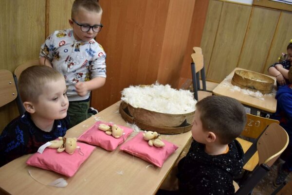 Przedszkolaki z entuzjazmem podeszły do wyznaczonych zadań, a przy ich realizacji było dużo śmiechu i zabawy. - Dzieci z zapałem obierały i tarły marchewki, a także szatkowały, mieszały i ubijały kapustę. Chętnie dotykały też puchu oraz dmuchały w piórka, które wirowały w powietrzu, wpadały we włosy i przyczepiały się do ubrań. Z piór robiły małe poduszeczki, które zabrały do domów dla swoich lalek i innych pluszowych pupili - relacjonują pomysłodawcy warsztatów.