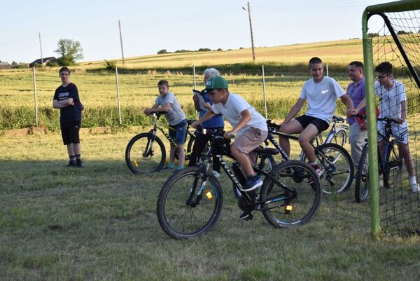 Podczas pikniku w Komarowie Wsi rowerzyści zasiedli przy wspólnym ognisku, ale zmęczenia nie czuli, bo chętni brali udział w konkurencjach sportowych. Mieli pokonać w jak najkrótszym czasie slalom z pachołkami, przejechać tę samą trasę slalomem strącając po drodze nogą kręgle oraz pokonać maksymalnie najdłuższy odcinek drogi po jednym pchnięciu pedałem.