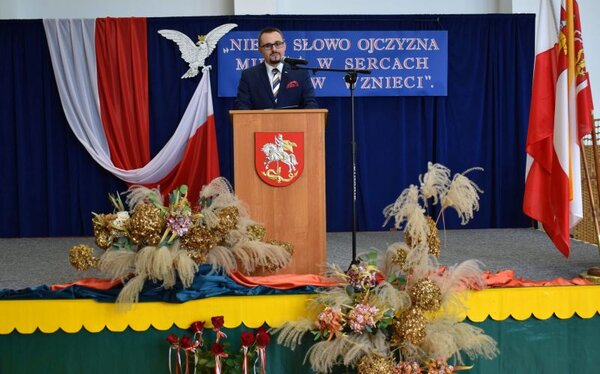 Dalsza część obchodów odbyła się w hali sportowej Szkoły Podstawowej w Komarowie-Osadzie. W okolicznościowym przemówieniu zastępca wójta Wojciech Łoś mówił o potrzebie jedności i wspólnych celach. - Mamy ogromne szczęście, że żyjemy w pokoju, ale musimy pamiętać, że pokój to dar, który trzeba pielęgnować. Tak jak nasi przodkowie potrafili stanąć ramię w ramię mimo różnic, tak i my musimy dziś być razem dla dobra wspólnego, dla naszych dzieci, dla przyszłości Polski - podkreślił Wojciech Łoś.