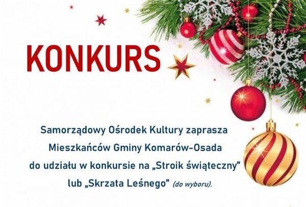 Kończy się cykl świątecznych konkursów z udziałem mieszkańców gminy Komarów-Osada. Miejscowy ośrodek kultury, biblioteka, szkoła podstawowa i Stowarzyszenie "Aktywni w kulturze" mają już kartki, ozdoby i wspomnienia, ale jeszcze przed świętami zachęcają do wykonywania bożonarodzeniowych stroików i skrzatów leśnych.
