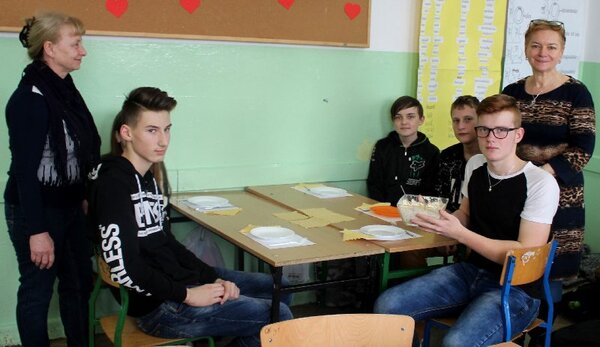 Dzień później swoją wiedzę kulinarną i umiejętnościami przygotowywania zdrowych posiłków wykazywali się ich młodsi koledzy z klas drugich. Na zajęciach technicznych w środę 21 lutego uczniowie przyrządzali pożywne sałatki, omawiali ich wartości odżywcze i wymieniali się uwagami na temat kulinarnych propozycji rówieśników. Pracę uczniów oceniały dyrektorki Anna Maryńczak i Anna Kupiec- Niedźwiedź, bibliotekarka - Beata Fizia oraz nauczycielka zajęć technicznych i pomysłodawczyni klasowych zmagań kulinarnych Elżbieta Żybura.