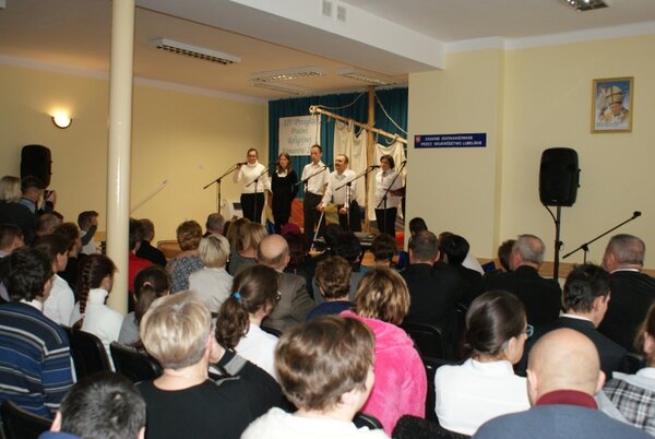 Gościnnie wystąpili członkowie chóru "Echo" z Publicznego Gimnazjum w Komarowie-Osadzie, którzy do występu przygotowywali się pod kierunkiem Marka Biszczana. Młodzi wokaliści nie tylko zaśpiewali trzy pieśni - "Dziś, gdy Chrystus ciebie szuka", "Idź na cały świat" i "Maryjo, śliczna Pani", ale również jako wolontariusze opiekowali się niepełnosprawnymi uczestnikami przeglądu. - Taka forma wychowania w naszej szkole jest praktykowana od lat. W ten sposób młodzież uczy się wrażliwości, a także bliżej poznaje specyfikę pracy z ludźmi chorymi i lepiej rozumie ich problemy - mówi dyrektor placówki Anna Maryńczak.