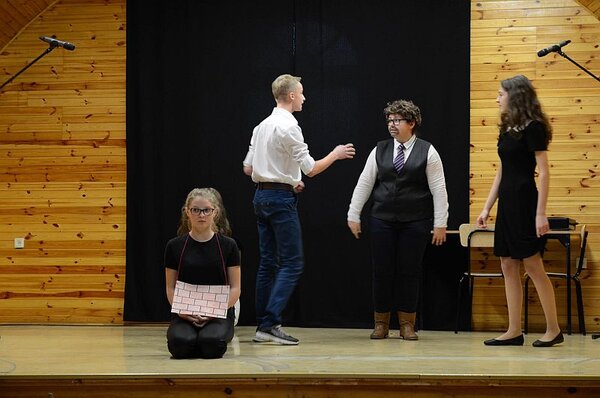 Był to spektakl inspirowany ,,Zemstą" Aleksandra Fredry, podejmujący problemy współczesnego społeczeństwa i relacji międzyludzkich. Aktorzy zachęcali widzów do "burzenia murów" i "budowania mostów", które łączą ludzi. - Cieszymy się z sukcesu naszego zespołu teatralnego, bo uczniowie włożyli wiele wysiłku, przygotowując się do konkursu. Od października pracowali nad scenariuszem sztuki, a także szukali najlepszych sposobów przekazania swoich emocji za pomocą słowa mówionego i śpiewanego oraz gestów. Niezwykły nastrój sztuki budowała także odpowiednio dobrana oprawa muzyczna. Jury doceniło również nowatorską scenografię, której autorami byli sami gimnazjaliści - podkreślają dyrekcja i opiekunowie grupy.