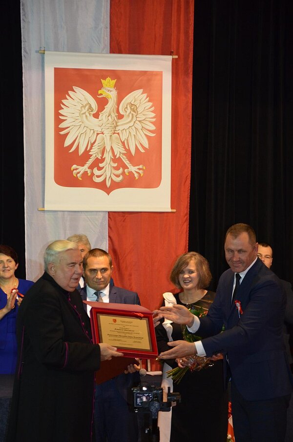 Druga część obchodów, na którą złożyły się m.in. uroczysta sesja rady i koncert patriotyczny, odbyła się w Krasnobrodzkim Domu Kultury. Radni wyjątkowo obradowali na scenie KDK, a przed przyjęciem uchwały o nadaniu księdzu prałatowi Marszalcowi tytułu "Honorowego Obywatela Gminy Krasnobród" wysłuchali wnioskodawcy, którym był burmistrz Krasnobrodu i laudacji, wygłoszonej przez księdza profesora Edwarda Walewandera. Bohater uroczystości dziękował radnym za przyznanie tytułu, a potem przyjmował gratulacje i życzenia od przedstawicieli władz samorządowych, radnych powiatowych - Agnieszki Adamczuk i Kazimierza Mielnickiego, dyrektor zamojskiej delegatury Kuratorium Oświaty w Lublinie Moniki Żur oraz delegacji szkół i miejscowości w gminie Krasnobród.