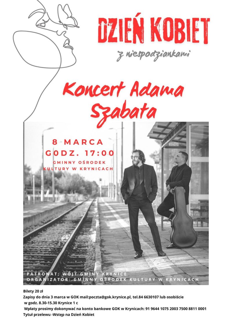 Muzyczny prezent dla pań z okazji ich święta ma dla mieszkanek gminy Krynice miejscowy ośrodek kultury. W niedzielę 8 marca o 17.00 placówka zaprasza na koncert Adama Szabata.