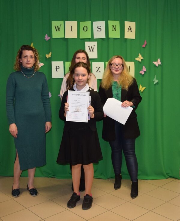 Uczestników tegorocznego konkursu "Wiosna w poezji" oceniały - nauczycielka i bibliotekarka z ZSP w Krynicach Sylwia Bajan, laureatka wielu konkursów recytatorskich Magdalena Olchawa i nauczycielka NSP w Hucie Dzierążyńskiej Dominika Radlińska.