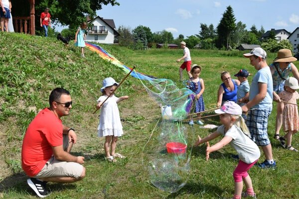Poza rywalizacją sportową najmłodsi bawili się z ogromnymi bańkami mydlanymi i kolorowymi balonami, chętnym dzieciom animatorzy malowali buzie, a o ofertę kulinarną zadbały koła gospodyń wiejskich z Antoniówki i Polan.