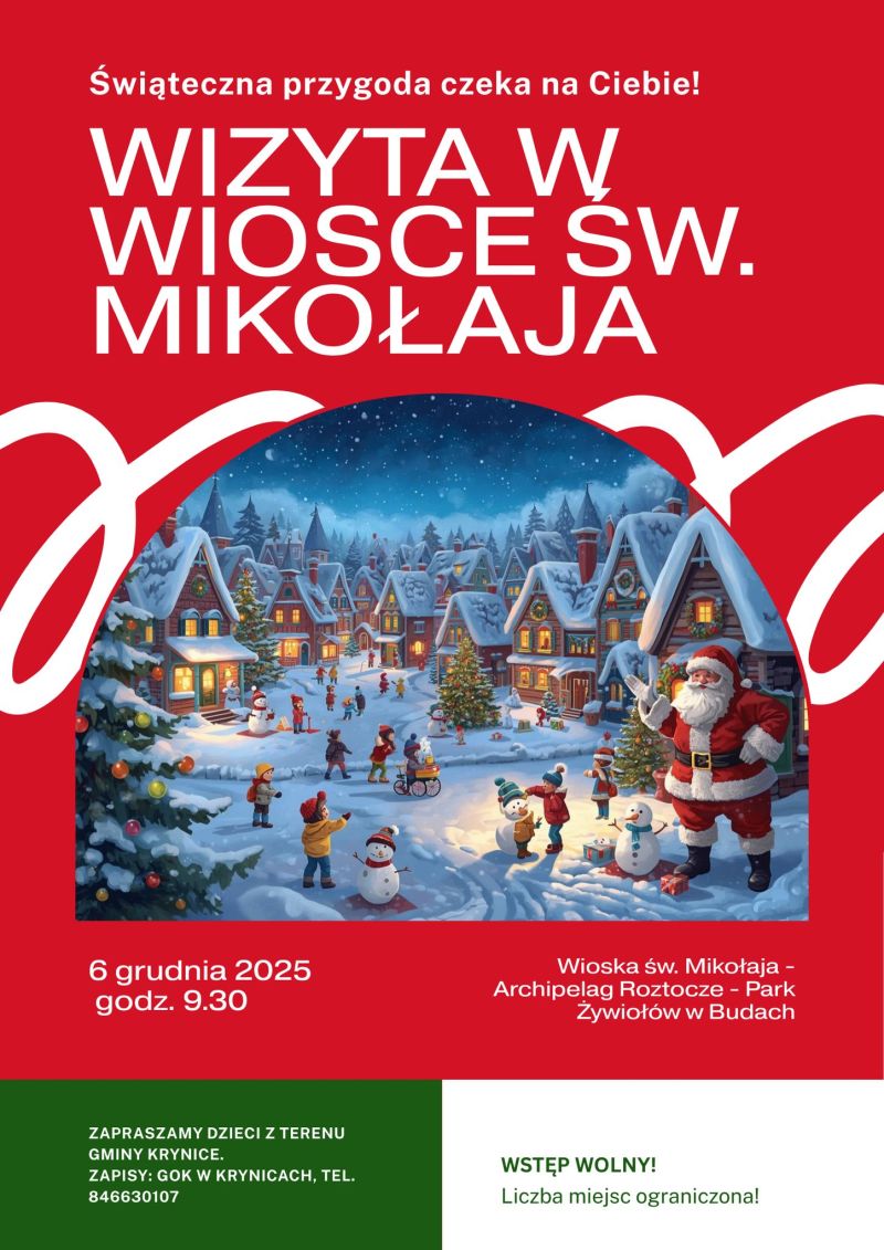 Prezentów nigdy za wiele. Oprócz tych, zostawionych pod poduszką, w kolorowej skarpecie, przy kominku czy na parapecie, dodatkowy upominek dla grzecznych dzieci z gminy Krynice ma miejscowy ośrodek kultury. Placówka zaprasza do Wioski św. Mikołaja w Archipelagu Roztocze - Parku Żywiołów w Budach, ale zastrzega, że miejsc ubywa w szybkim tempie.