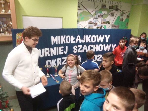 Turnieje i lekcje szachowe w Okrzei są organizowane od kilku lat. W stałych zajęciach, które odbywają się raz w tygodniu biorą udział drugoklasiści, ale w wolnym czasie, na przykład na przerwach czy po lekcjach, w szachy grają także ich starsi koledzy oraz młodsi, nawet "zerówkowicze". Poza tym cyklicznie odbywają się turnieje skienkiewiczowskie, organizowane zwykle w maju z okazji urodzin noblisty. Uczniowie z Okrzei startują również, z sukcesami, w zawodach o szerszym zasięgu, nawet rangi mistrzostw województwa, a w planach jest turniej internetowy dla wszystkich szkół sienkiewiczowskich w Polsce. Zawody mają się odbyć w styczniu, przed feriami.