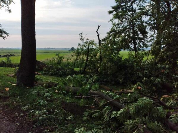 Z danych internetowych serwisów pogodowych wynika, że przez granicę gmin Krzywda i Kłoczew przeszła trąba powietrzna, która niszczyła wszystko co napotkała po drodze w pasie o szerokości około 1,5 do 2 kilometrów i długości kilku kilometrów. - Nagle zrobiło się ciemno, wiał niesamowicie silny wiatr i padał grad wielkości piłek pingpongowych. Mieszkańcy Okrzei i Woli Okrzejskiej, które w naszej gminie ucierpiały najbardziej, mówią, że czegoś takiego nigdy nie widzieli. Wiatr zerwał kilka dachów z budynków mieszkalnych i uszkodził kilkanaście budynków inwentarskich. Ogromne straty są też w uprawach, szczególnie kukurydzy oraz malin. Jeden z rolników stracił prawie 80 procent upraw - relacjonuje w rozmowie z Informacyjną Agencją Samorządową wójt gminy Krzywda Krzysztof Warda.