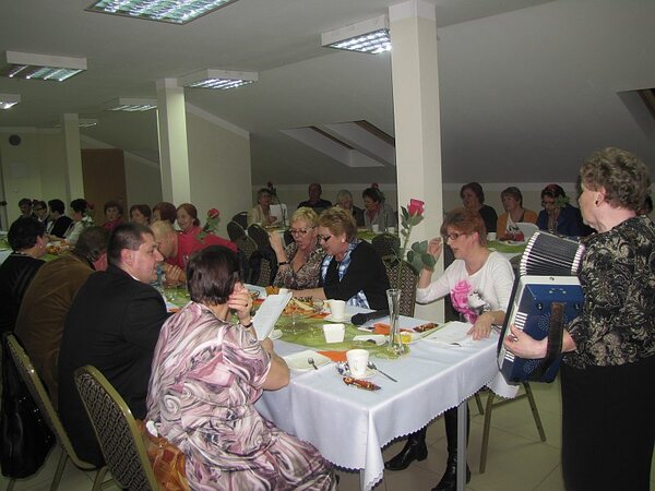 Po koncercie, rozbawieni przez Dariusza Tokarzewskiego uczestnicy spotkania zaprosili go do świętowania przy stole, tym razem na biesiadną nutę. Dalszą zabawę poprowadziła instruktorka Lokalnego Teatru Amatorskiego "To i Owo" Iwona Chudek, której na akordeonie towarzyszyła Krystyna Walaszek.
