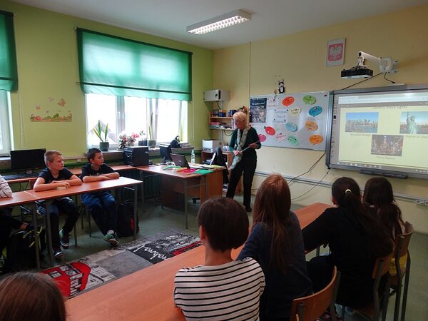 Ponadto uczniowie pytali Carol Petrykus o jej ulubione kolory i zwierzęta, jej rodzinę i pogodę w USA, na temat pogody w jej rodzinnym mieście, ulubionego koloru, zwierzęcia czy rodziny.