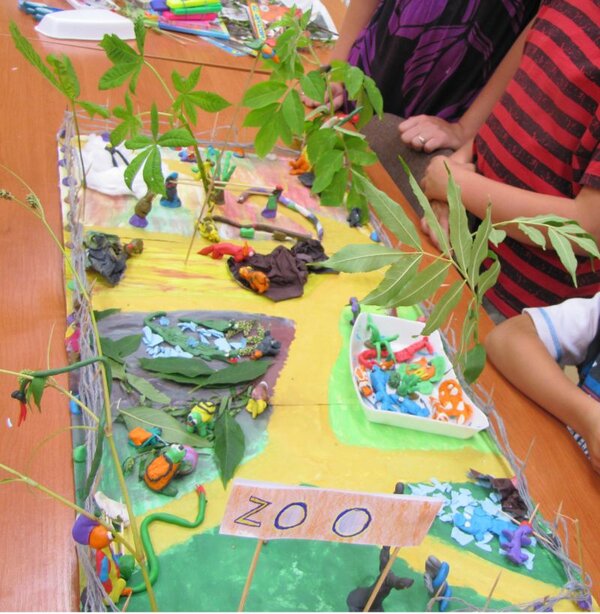 Zajęcia dla najmłodszych mieszkańców gminy zorganizowała w ostatnim tygodniu przed rozpoczęciem nowego roku szkolnego Gminna Biblioteka Publiczna. Pracownicy placówki zaprosili na nie dzieci, które lubią malować, rysować czy lepić figury z plasteliny, modeliny i innych materiałów nie tylko plastycznych. Na przykład do wykonania płotu ZOO została użyta...włóczka. Efekty pracy najmłodszych, czyli obrazy, rysunki i makietę ogrodu zoologicznego, można oglądać na powakacyjnej wystawie.