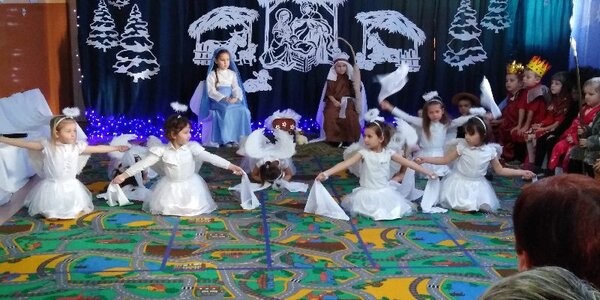Po powitaniu gości przez dyrektor przedszkola Dorotę Bednarz-Żuk, 5-latki z grupy "Pszczółki" przygotowane przez Małgorzatę Paluch z przejęciem prezentowały swoje zdolności wokalne i recytatorskie. Publiczność była pod ogromnym wrażeniem zarówno gry aktorskiej małych artystów, jak i niezwykłej scenerii, które przywróciły choć na chwilę atmosferę świąt Bożego Narodzenia.