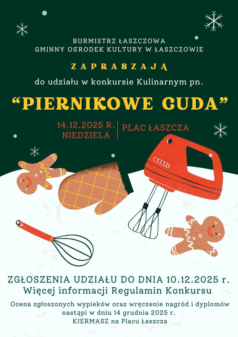 W wielu domach Boże Narodzenie nieodłącznie kojarzy się z zapachem pierników, doprawianych cynamonem, gałką muszkatołową czy imbirem, a wyrabianie ciasta i pieczenie gromadzi przy kuchennym stole i małych i dużych. Do kultywowania tej tradycji i pochwalenia się zdolnościami kulinarnymi mieszkańców gminy Łaszczów zachęcają organizatorzy konkursu pod nazwą "Piernikowe cuda".