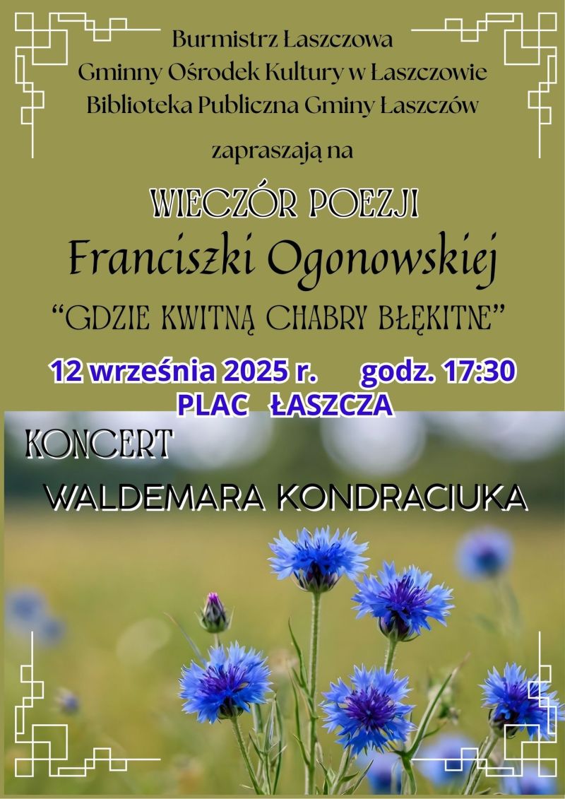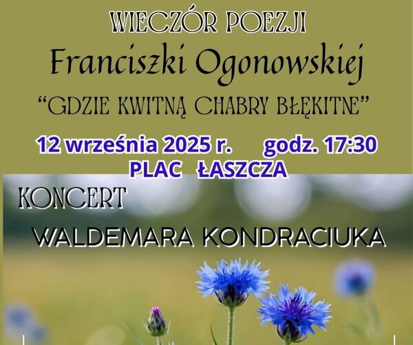 To będzie czas pełen refleksji, pięknych słów i muzyki. Tak najbliższe wydarzenie plenerowe na Placu Łaszcza w Łaszczowie reklamują organizatorzy wieczoru poezji Franciszki Ogonowskiej i koncertu Waldemara Kondraciuka.