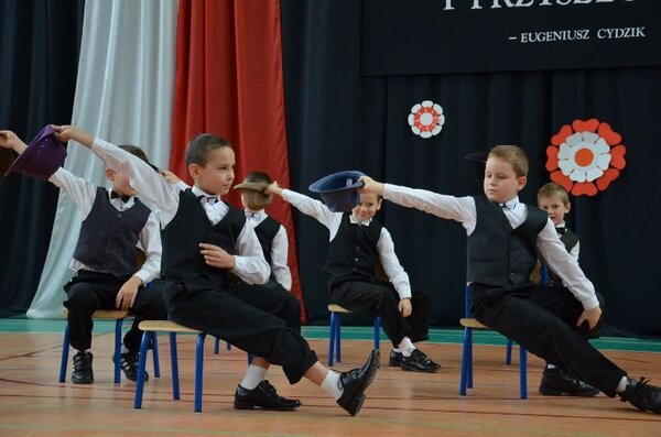 Uroczystości były też okazją do przyjęcia w poczet braci uczniowskiej tych, którzy w tym roku szkolnym rozpoczęli naukę. Dzieci z klasy pierwszej złożyły ślubowanie na sztandar szkoły i zostały pasowane na uczniów. Otrzymały także upominki ufundowane przez rodziców, a wcześniej zdały egzamin ze znajomości symboli narodowych, śpiewu, tańca i recytacji.