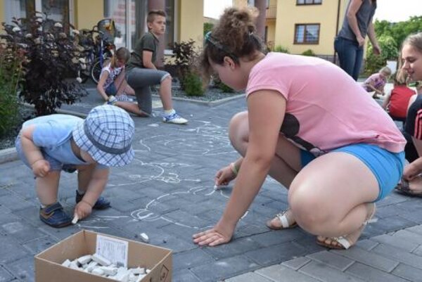 Dzieci rozpoczęły tegoroczną "Noc w bibliotece" od warsztatów puszczania dużych baniek mydlanych i rysowania kredą postaci z bajek na placu przed placówką. Było też głośne czytanie na ławeczkach literackich, ustawionych przed wejściem do modliborzyckiej książnicy, wyścigi, gry w klasy i wiele innych atrakcji, wykorzystujących nowoczesne wyposażenie placówki. Program spotkania dla najmłodszych okazał się na tyle ciekawy, że druga część imprezy, przeznaczona dla dorosłych, rozpoczęła się nieco później niż przewidywano.