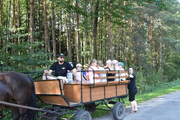Cała grupa korzystała z przejażdżek konnym wozem po okolicznych lasach i karmiła zwierzęta, co dla niektórych, głównie najmłodszych uczestników eskapady, było sporym przeżyciem. Ponadto zarówno dzieci, jak i rodzice mogli postrzelać z łuku oraz wziąć udział w warsztatach, podczas których wykonywali postaci sów z siana.