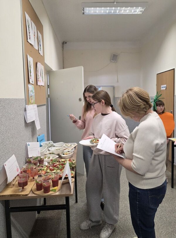 Ostatniego dnia obchodów, który upłynął pod hasłem "Zdrowe odżywianie", każda klasa przygotowywała zdrowe przekąski. - Koktajle, sałatki, kanapki czy pasty kanapkowe powstawały nie tylko z tradycyjnych ogórków, pomidorów czy szczypiorku. Młodzi kucharze używali równie ciecierzycy, kiełków, avocado, szpinaku i pokrzywy - relacjonuje w rozmowie z Informacyjną Agencją Samorządową pomysłodawczyni i koordynatorka obchodów Mariola Cąkała. Zanim wszystkie przekąski zostały skonsumowane oceniło je jury, które brało pod uwagę m.in. pomysłowość, estetykę i walory zdrowotne. Ostatecznie wszystkie klasy zajęły ex aequo pierwsze miejsce, a w czasie obrad komisji uczniowie oglądali filmy o tematyce zdrowotnej.
