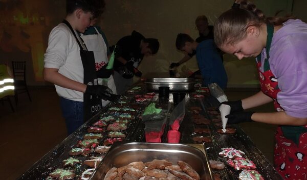 Młodzi cukiernicy poznali zasady wypieku pierników, wałkowali ciasto, a potem za pomocą świątecznych foremek wykrawali różne kształty pierniczków, które po upieczeniu dekorowali.