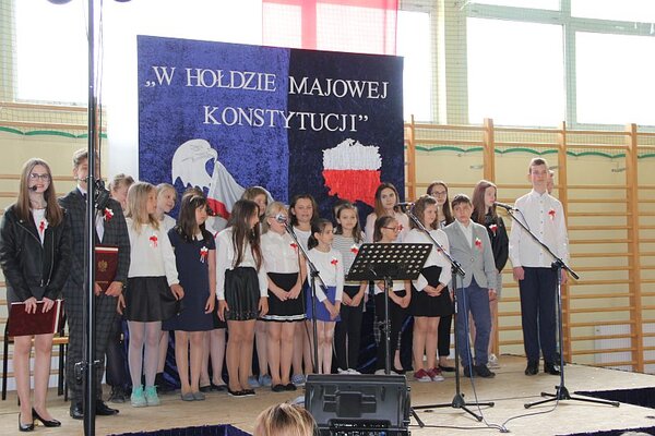 W ramach obchodów rocznicy uchwalenia Konstytucji 3 Maja i przystąpienia Polski do UE, oprócz uroczystego apelu, miejscowi gimnazjaliści przygotowali okolicznościowe gazetki, które będą prezentowane na szkolnym korytarzu także po długim majowym weekendzie.