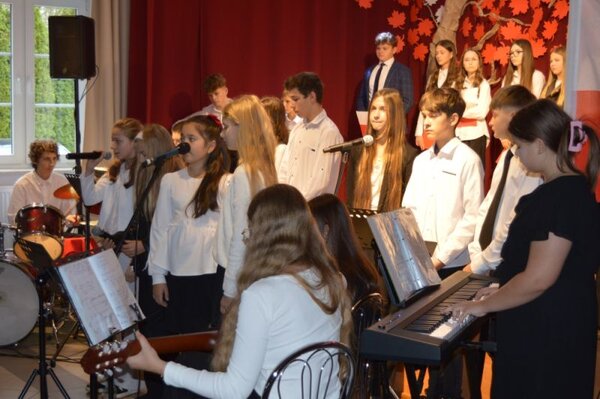 Głównym punktem popołudniowych obchodów narodowego święta była akademia w wykonaniu uczniów Szkoły Podstawowej w Obszy. Młodzi artyści prezentowali pieśni, piosenki i teksty, nawiązującej do rocznicy odzyskania przez Polskę niepodległości. O oprawę muzyczną szkolnego programu zadbali członkowie ogniska muzycznego, które w ośrodku kultury prowadzi Tadeusz Kubów.