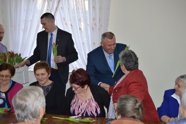 Czwartkowe warsztaty kulinarne poprzedziły życzenia od wójta gminy Obsza Andrzeja Placka i sekretarza Grzegorza Wróbla, którzy wręczyli paniom kwiaty, a potem także korzystali z porad mistrza kuchni.