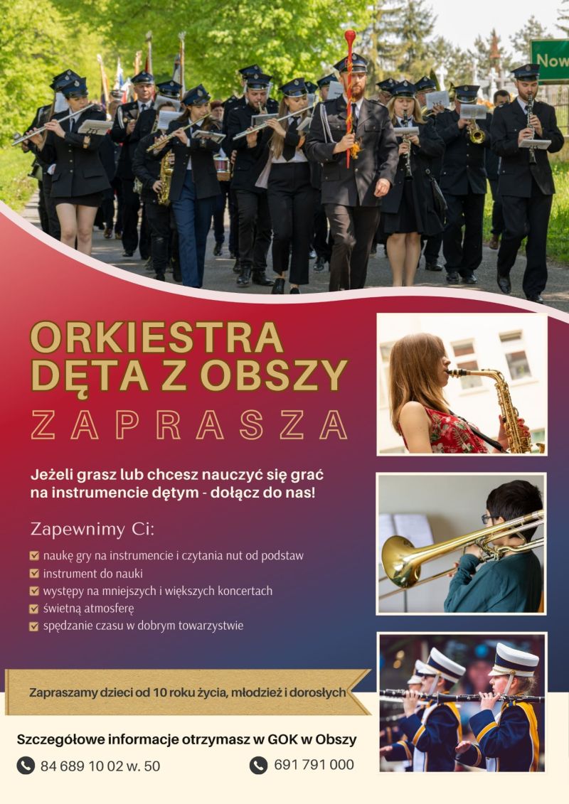 Uzdolnieni muzycznie mieszkańcy gminy Obsza, którzy chcą rozwijać swoją artystyczną pasję, mogą to robić w miejscowej orkiestrze dętej, która szuka nowych członków. Po szczegółowe informacje organizatorzy naboru zapraszają do miejscowego ośrodka kultury.