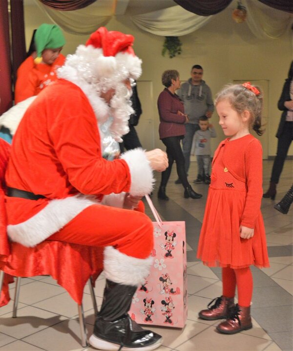 Dzieci najpierw z zaciekawieniem oglądały przedstawienie, a potem chętnie odpowiadały na pytania, odbierając w nagrodę upominki od Świętego Mikołaja.