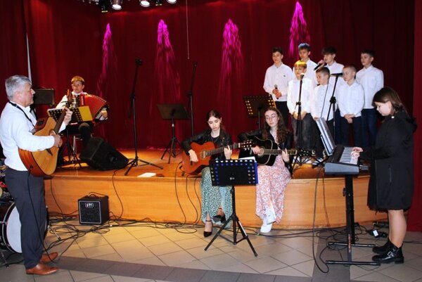 Wokalno-muzyczną ucztę z okazji 8 Marca rozpoczęły "Dzieci Tadzia", czyli wokaliści i instrumentaliści z ogniska muzycznego, które w GOK w Obszy prowadzi Tadeusz Kubów. Młodzi artyści z towarzyszeniem akordeonu, gitar i keyboardu zaśpiewali m.in.: "Małą Maggie", "Zakochanego klauna" i "Już taki jestem zimny drań".