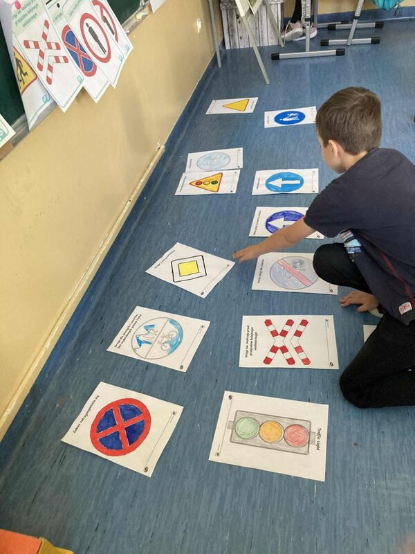 Zajęcia odbywa się we wszystkich klasach, a także w szkolnej świetlicy u "świetliczaków". Uczniowie rozmawiają o zasadach bezpiecznego poruszania się po drodze, przekonują się dlaczego warto zakładać kamizelki i opaski odblaskowe, poznają znaki drogowe i telefony alarmowe, a także oglądają filmy pokazujące jak kierowcy widzą pieszych w dzień i w nocy.