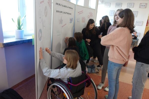 Swój sprzeciw wobec przemocy uczniowie z Siennicy Różanej wyrażali już wcześniej na tablicach, które od początku tego tygodnia stały na szkolnym korytarzu. Pod hasłami: "Weź nie hejtuj. Weź się przytul", "Szanuję. Akceptuję. Nie hejtuję", "Słowa zostawiają ślady. Słowa ranią", "Nie hejtuję. Reaguję" oraz "Hejt z daleka omijam i piątkę przybijam", uczniowie i nauczyciele składali na nich nietypowe podpisy, odrysowując... swoje dłonie.