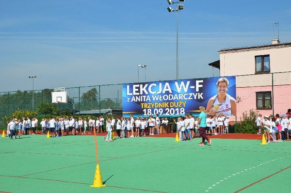 Mistrzyni przyjechała na zajęcia "złotym autobusem", którym wróciła z kibicami z sierpniowych Mistrzostw Europy, w których zdobyła kolejny mistrzowski tytuł. We wtorek, po drodze na zajęcia na trzydnickim "Orliku", Anita Włodarczyk zabrała grupę uczniów z Woli Trzydnickiej, która razem z rówieśnikami z innych placówek mogła z nią później poćwiczyć.