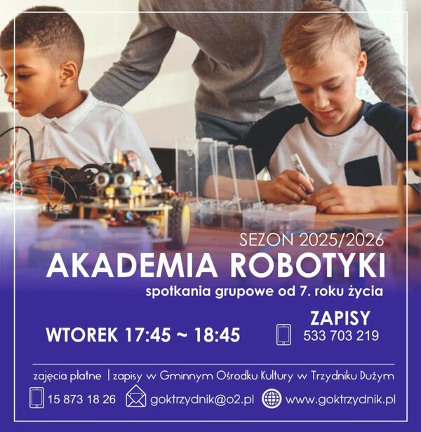Spotkania w "Akademii robotyki" odbywają się we wtorki, a dodatkowe informacje można uzyskać telefonicznie pod numerem: 533 703 219.