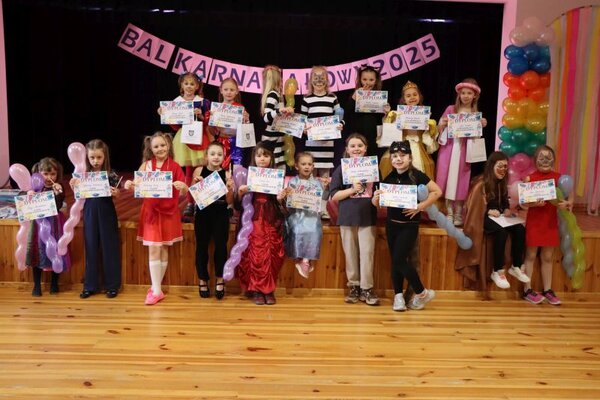 Zwieńczeniem zimowej przerwy szkolnej był środowy bal karnawałowy z animatorkami z agencji "Skaczący Gumiś". W rytm skocznych melodii z balonami, w pociągu, pod tyczką, na linie i w kilku innych konfiguracjach bawiły się m.in. księżniczki, myszki, kotki i misie. Na koniec zabawy został rozstrzygnięty konkurs na najładniejszy strój, a uczestnicy balu odebrali dyplomy z upominkami.