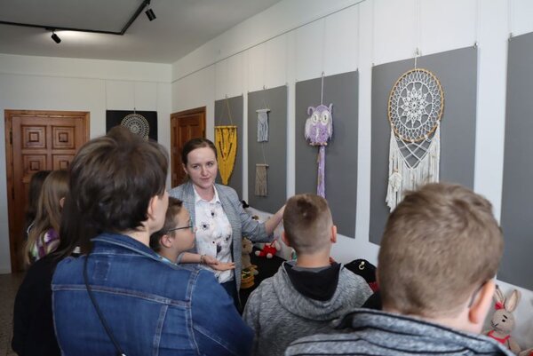 AI "uratowała twarz" dokładnie odpowiadając na pytanie co to jest makrama. Jej wiedzę uczniowie od razu skonfrontowali z wystawą rękodzieła Karoliny Tarkowskiej z Trzydnika Małego, która zajmuje się wyplataniem ozdobnych węzłów i wzorów z różnego rodzaju włókien. Ekspozycję tworzą m.in. łapacze snów, makramowe firanki, maskotki, breloki i torebki. Wszystko można oglądać i kupić na wystawie w ośrodku kultury w Trzydniku Dużym, która jest czynna do 10 maja.