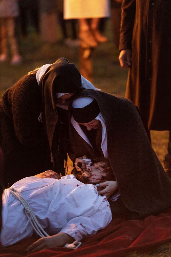 Była znakomita gra aktorska, ciekawa scenografia, oryginalne rekwizyty i podniosła atmosfera. - Jestem pełna uznania dla wszystkich wykonawców. Mimo, że po raz pierwszy misterium prezentowaliśmy w zupełnie innej przestrzeni, każdy potrafił się odnaleźć w nowym otoczeniu, a część musiała się wykazać odwagą i hartem ducha. Wprawdzie pogoda nam sprzyjała, ale było dość chłodno, a teren, na którym graliśmy poszczególne sceny był podmokły. Mimo to część aktorów występowała w sandałach, a niektórzy nawet boso - podkreśla Ewa Miśkiewicz, dziękując wszystkim, którzy mieli swój udział w niedzielnej inscenizacji.