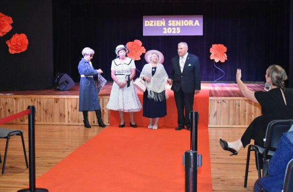 Okazję do pochwalenia się znakomitym przygotowaniem do występów publicznych mieli również sami seniorzy. Na specjalnie z tej okazji wyłożonym czerwonym dywanie starsi mieszkańcy gminy zaprezentowali stylizacje z czasów PRL.