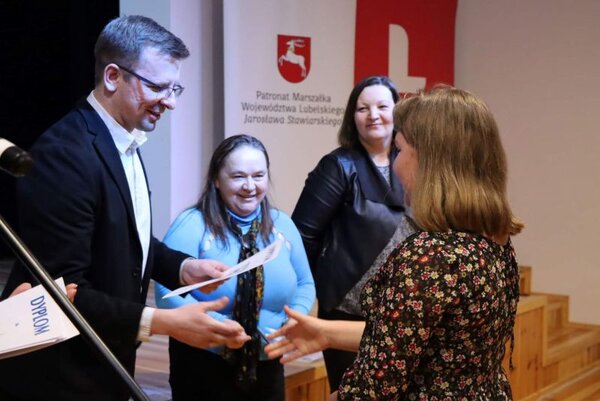 Piątkowe występy były także okazją do podziękowań dla dyrektor ośrodka kultury Ewy Soboty za 30 lat pracy, które złożyli wójt Krzysztof Serafin i sekretarz gminy Tomasz Mularczyk. Pani dyrektor otrzymała bukiet róż i pamiątkowy grawer za napisem: "Za wieloletnią pracę, pełną profesjonalizmu i pasji na rzecz rozwoju kultury w Gminie Trzydnik Duży. Dziękujemy za wielkie serce i życzliwość, za podejmowanie inicjatyw, zorganizowane liczne wydarzenia, spotkania i uroczystości, które zachwycały, wzruszały i pozostawiły w pamięci niezapomniane wrażenia".