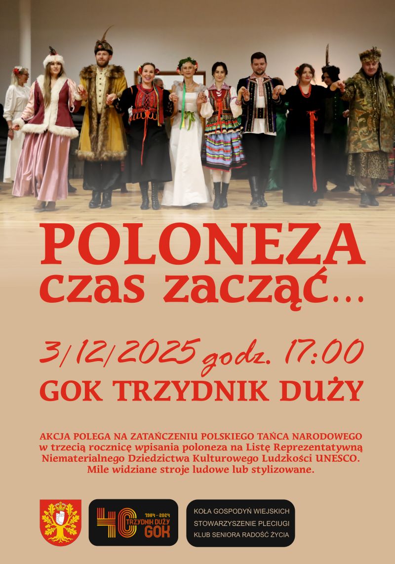Wystawa zostanie otwarta w środę 3 grudnia o 17.00. Wernisaż będzie połączony z trzecią edycją akcji "Poloneza czas zacząć". W ten sposób tancerze, którzy odpowiedzą na zaproszenie trzydnickiego ośrodka kultury, uczczą drugą rocznicę wpisania tego tańca na Listę Reprezentatywną Niematerialnego Dziedzictwa Kulturowego Ludzkości UNESCO. Przed rokiem "w tany" ruszyli - uczniowie i nauczyciele, seniorzy, członkinie kół gospodyń wiejskich, a także przedstawiciele stowarzyszeń, organizacji pozarządowych i gminnych jednostek samorządowych.
