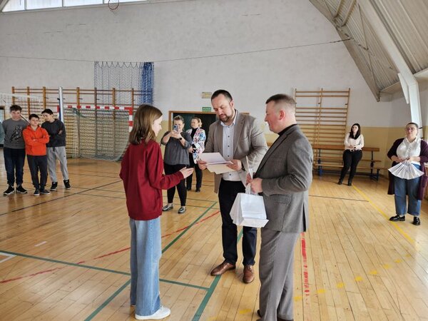 Laureaci piątkowych zmagań odebrali nagrody rzeczowe, a wszyscy uczniowie otrzymali upominki i dyplomy od wójta Krzysztofa Serafina i sekretarza gminy Tomasza Mularczyka.