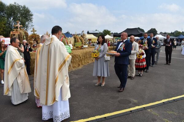 Wspomniany przez burmistrza Tyszowiec chleb przynieśli na niedzielne święto starostowie dożynkowi - Anna Litwińczuk z Kazimierówki i Arkadiusz Jurkiewicz z Zamłynia. Zarówno bochen jak i wieńce zostały poświęcone podczas dziękczynnej mszy świętej, którą odprawili wspólnie ksiądz prałat senior Czesław Grzyb z Tomaszowa Lubelskiego oraz proboszczowie - parafii w Tyszowcach ksiądz Piotr Kawecki i w Czartowcu ksiądz Jan Borysowski.