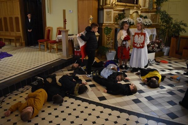 Główne obchody we wtorek 11 listopada rozpoczęły się w kościele w Tyszowcach od specjalnego program słowno-muzycznego w wykonaniu uczniów miejscowej szkoły podstawowej. Po tym wprowadzeniu w świąteczną atmosferę uczestnicy uroczystości modlili się na mszy świętej w intencji ojczyzny, której przewodniczył proboszcz miejscowej parafii ksiądz Piotr Kawecki.