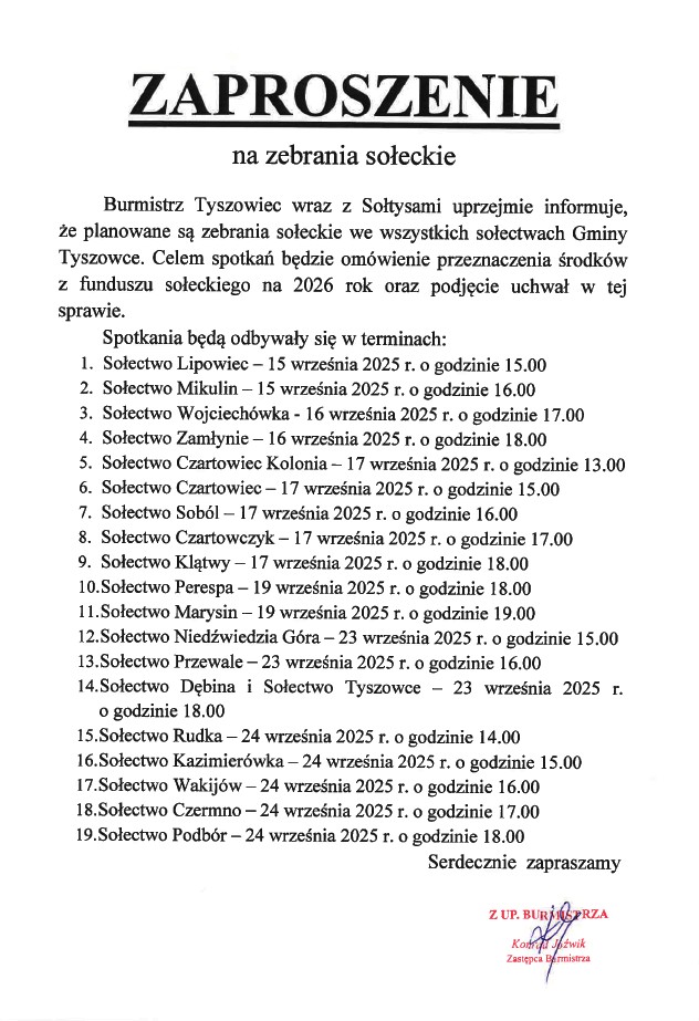 Po ponad 20 latach mieszkańcy gminy Tyszowce znów mogą dysponować funduszem sołeckim. W kwietniu o przywróceniu takiej możliwości zadecydowała rada miejska, a po weekendzie rozpocznie się cykl zebrań wiejskich, na których zapadną decyzje o wykorzystaniu przyznanych pieniędzy w 2026 roku.