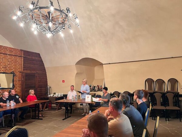 We wtorkowe przedpołudnie adepci kowalstwa stawili się w Wieży Ariańskiej, gdzie zostali powitani m.in. przez dyrektor Gminnego Ośrodka Kultury Agnieszkę Gąskę, wójta Artura Markowskiego i prezesa Stowarzyszenia Kowali Polskich Romana Czernieca.
